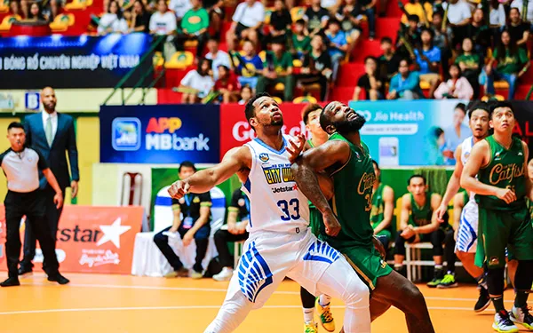 Hochiminh City Wings (áo-trắng) xuất sắc quật ngã đương kim vô địch VBA Cantho Catffish.