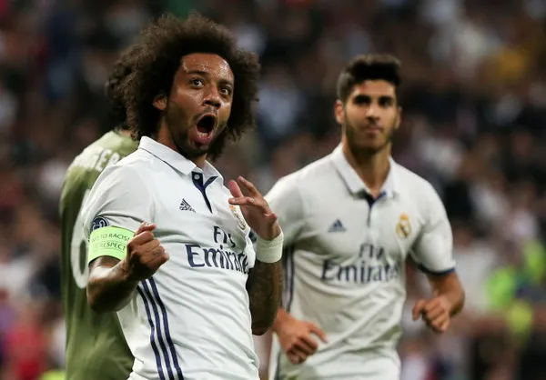 Marcelo ăn mừng bàn thắng thứ hai cho Real. Ảnh: Reuters