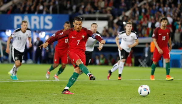 Ronaldo sút phạt đền - Ảnh: Reuters.