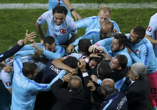 Các cầu thủ Thổ Nhĩ Kỳ vui mừng sau trận thắng quý như vàng - Ảnh: Reuters
