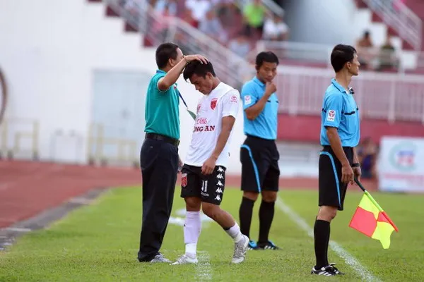 Tấn Tài rời sân sau khi phải nhận thẻ đỏ vì chơi xấu. Ảnh: N.K/ TTO.