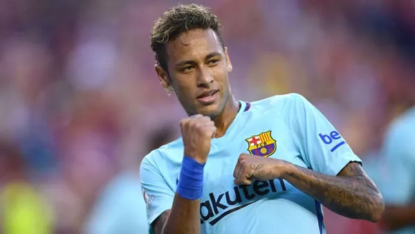 Neymar ăn mừng bàn thắng vào lưới MU.