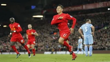 Tiền đạo Roberto Firmino ăn mừng bàn nâng tỉ số lên 2-1 cho Liverpool. Ảnh: Reuters
