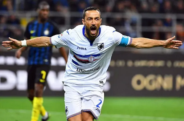 Quagliarella ăn mừng bàn nâng tỉ số lên 2-1 cho Sampdoria. Ảnh: EPA