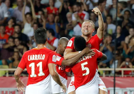 Niềm vui của các cầu thủ Monaco sau khi ghi bàn vào lưới Toulouse. Ảnh: Reuters