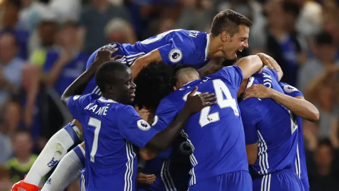 Chelsea: Courtois; Ivanovic, Cahill, Terry (c), Azpilicueta; Kante; Willian (Pedro, 80’), Matic, Oscar (Batshuayi, 85’), Hazard (Moses, 85’); Costa.