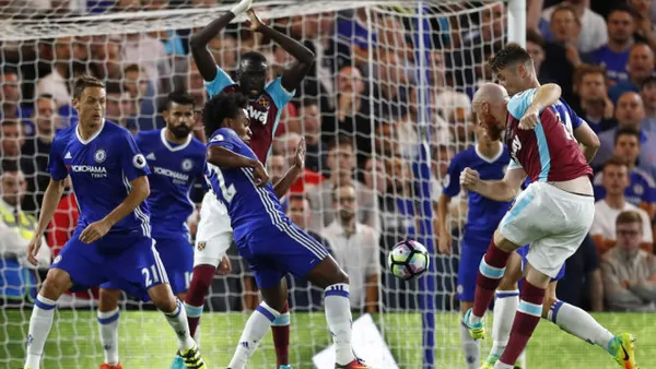 Ở đầu hiệp 2 sau sai lầm của hàng phòng ngự West Ham. Phút 47, hậu vệ Michail Antonio mắc sai lầm khi để mất bóng trước vòng cấm, sau đó tiếp tục phạm lỗi với Azpilicueta trong vòng 16m50, khiến West Ham bị phạt penalty. Không bỏ lỡ cơ hội, Hazard thực hiện thành công quả phạt đền, mở tỉ số cho Chelsea.