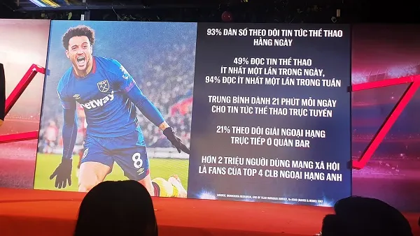 Ngoài ra, nghiên cứu của các chuyên gia cũng cho thấy, người hâm mộ thể thao tại Việt Nam đặc biệt yêu thích giải Ngoại hạng Anh với 2 triệu cư dân mạng hiện là fan của 4 đội bóng hàng đầu; khán giả truyền hình Việt Nam cũng xếp thứ ba trên toàn thế giới về mức độ quan tâm đến Premier League.