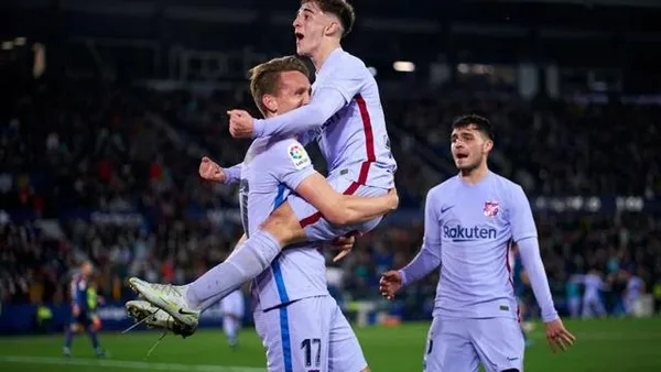 Barca giành chiến thắng kịch tính 3-2 trước Levante trong ngày HLV Xavi liên tục trổ tài thay người, còn trọng tài có 3 lần thổi phạt đền. Những người ghi bàn lần lượt cho Barcelona là P. Aubameyang ở phút 59', Pedri phút 63 và L. de Jong phút 90+2.