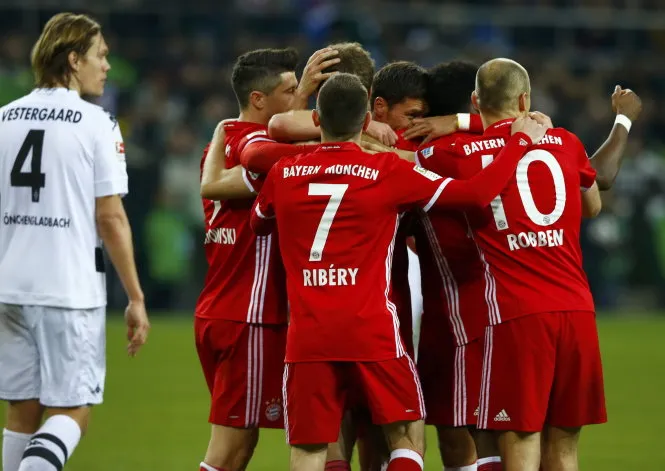 Ở trận đấu muộn vòng 25 Giải vô địch Đức (Bundesliga), tiền đạo Thomas Mueller đã ghi bàn thắng duy nhất, giúp Bayern Munich (B.M) đá bại Borussia Moenchengladbach 1-0 trên sân Borussia-Park.