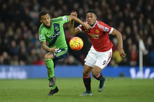 Anthony Martial (phải, Man.United) trước sự bám sát của Ryan Bertrand (Southampton).
