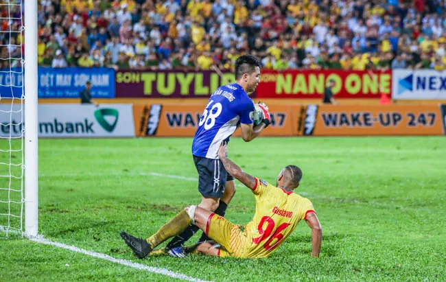 Đúng vào thời gian bù giờ, Nguyễn Hạ Long ghi bàn ấn định tỉ số hoà 2-2 cho đội bóng thành Nam.