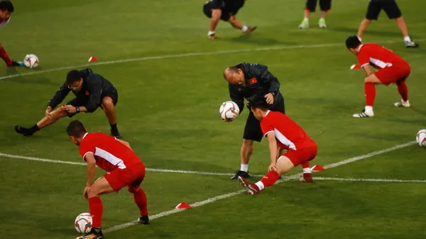 Thay vào đó, thầy Park dành nhiều thời gian hơn để quan sát các học trò khởi động. Ảnh: Như Đạt.