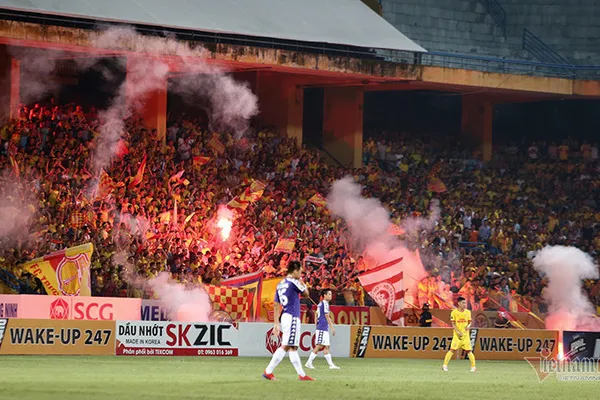 CĐV Nam Định nhận án phạt nặng do đốt pháo sáng và tấn công cảnh sát. Ảnh: Vietnamnet