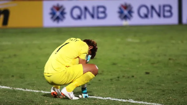 Khuôn mặt bất lực của Sou Yati khi chứng kiến Hà Nội FC liên tục ăn mừng bàn thắng. Ảnh: Như Đạt.