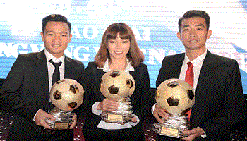 Khoảnh khắc sôi động rất bóng đá như thế càng thêm đáng nhớ khi các danh hiệu được gọi tên chủ nhân. Tiền vệ Đinh Thanh Trung (CLB QNK Quảng Nam) vinh dự đoạt danh hiệu Quả bóng vàng nam 2017. Anh đã có một mùa giải thành công với chức vô địch cùng Quảng Nam tại V-League 2017, ghi được 10 bàn và có 9 kiến tạo tại giải đấu, trở thành một trong vài cầu thủ nội xuất sắc nhất mùa.