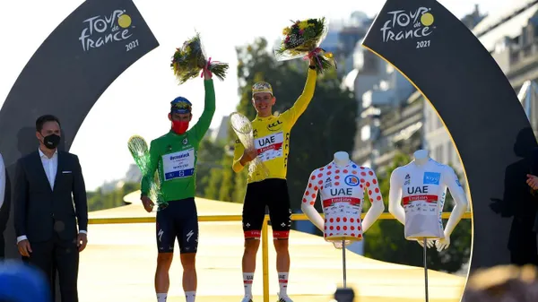 Có mặt trong nhóm đầu về đích, tay đua Tadej Pogacar (UAE Emirates) đã chính thức giành cả áo vàng chung cuộc Tour de France 2021 với thành tích 82 giờ 56 phút 36 giây. Ngoài ra, anh cũng đoạt luôn chiếc áo chấm bi đỏ dành cho vua leo núi với 107 điểm. Vì mới 22 tuổi nên tay đua Slovenia giành luôn chiếc áo trắng dành cho tay đua trẻ xuất sắc nhất. Đây là năm thứ hai liên tiếp Tadej Pogacar thâu tóm cả áo vàng, áo đỏ và áo trắng chung cuộc của Tour de France.