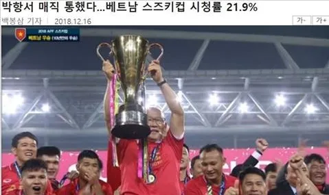 Sau khi trận đấu kết thúc, thông tin về trận chung kết cũng lọt top chủ đề trên trang chủ Naver với hơn 8.000 lượt like. Khán giả Hàn Quốc để lại nhiều bình luận chúc mừng ĐT Việt Nam và HLV Park Hang Seo đã trở thành những nhà vô địch mới của bóng đá Đông Nam Á.