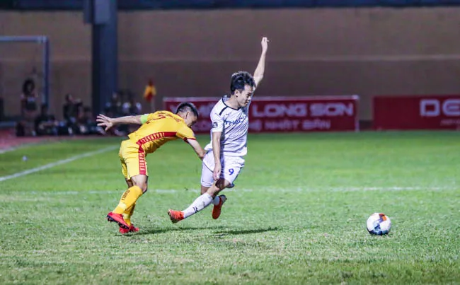 Tốc độ và sự khéo léo của Văn Toàn nhiều lần khiến hàng phòng ngự Thanh Hoá gặp khó khăn trong việc lên phương án ngăn chặn.