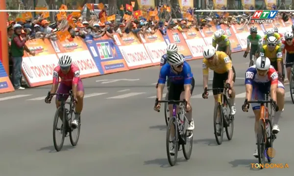 Tay đua Zachary Patterson (620 Nông nghiệp Vĩnh Long) giành chiến thắng sau màn nước rút “nghẹt thở” trước Marchuk Dzianis (Kenda Đồng Nai).