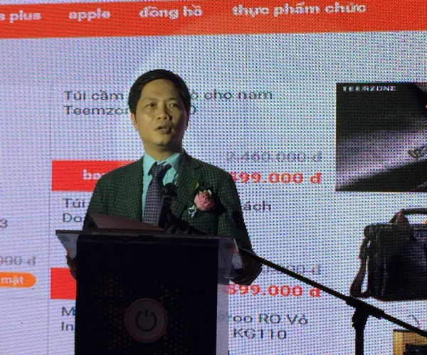 Thứ trưởng Bộ Công Thương Trần Tuấn Anh phát biểu khai mạc Ngày mua sắm trực tuyến Việt Nam - Ảnh: K.Ngân.