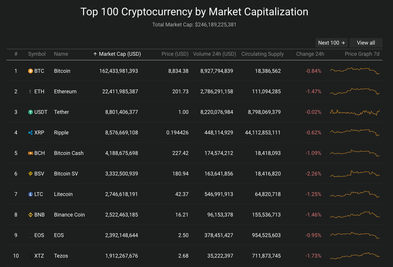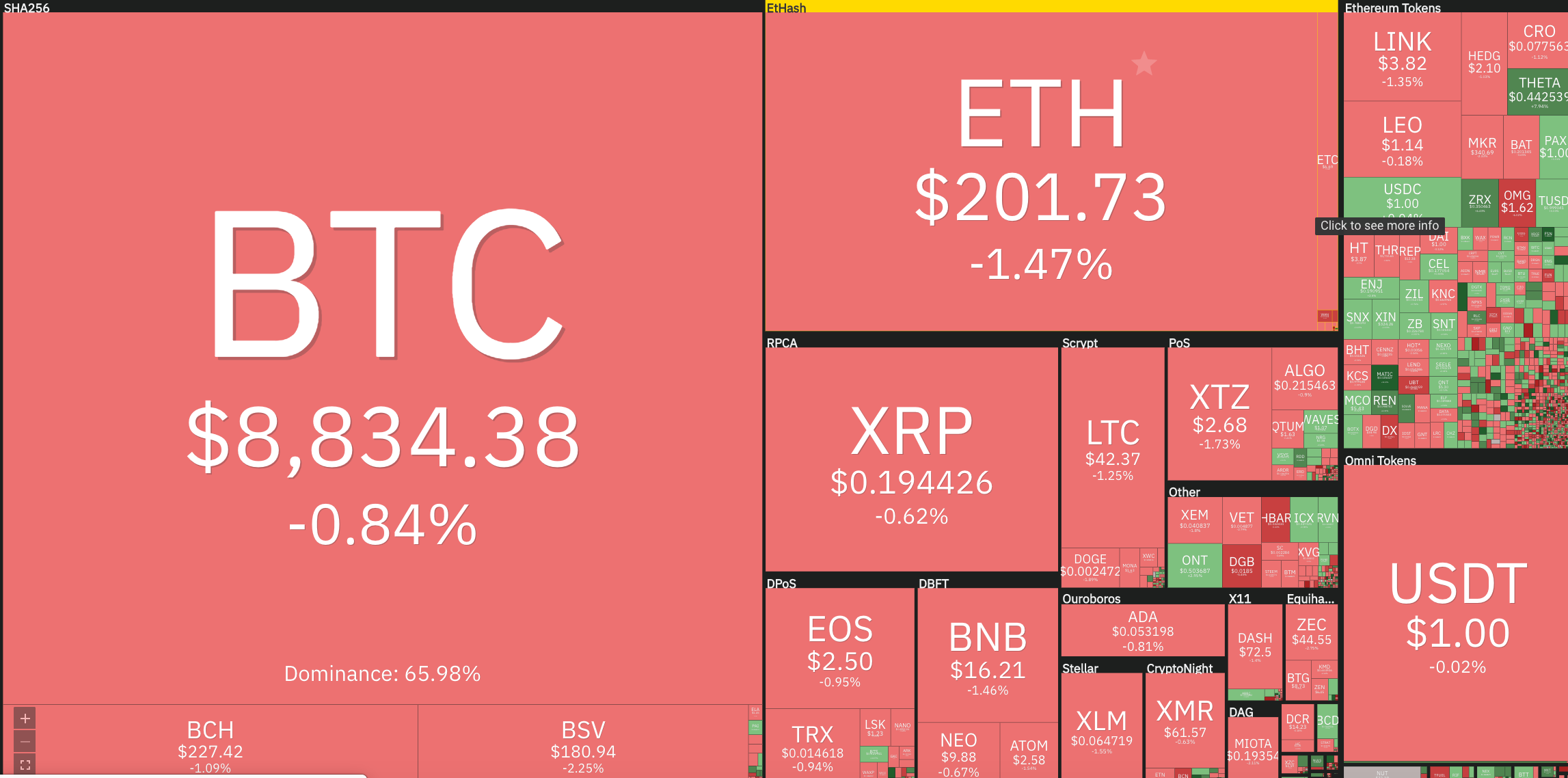 Giá Bitcoin hôm nay 27/5 ghi nhận vào thời điểm 9h00, giảm nhẹ ở mức 8.834,38 USD, giảm 0,84% so với 24 giờ qua.
