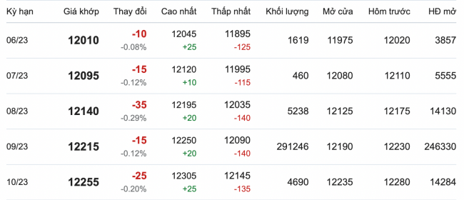 Giá cao su kỳ hạn tháng 4/2023 trên sàn Thượng Hải giảm nhẹ 10, ghi nhận mức 12.010 CNY/tấn, tương đương 0,08%.