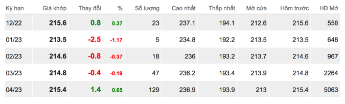 Tại Sở giao dịch hàng hóa Tokyo, giá cao su ngày 30/11/2022, lúc 13h00, kỳ hạn tháng 1/2023, tăng lên mức 215,4 JPY/kg, tăng mạnh 1,4 yên, tương đương 0,65%.
