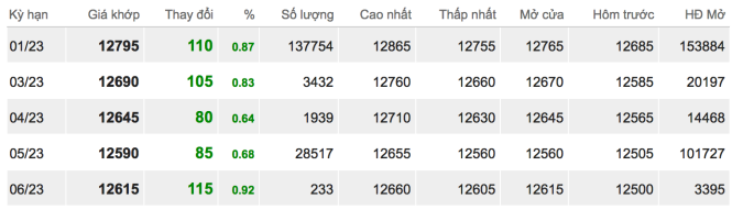 Giá cao su kỳ hạn tháng 1/2023 trên sàn Thượng Hải tăng mạnh 110, ghi nhận mức 12.795 CNY/tấn, tương đương 0,87%.