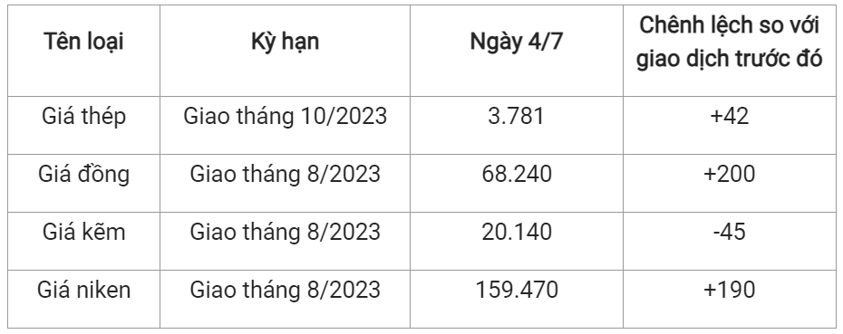 Giá thép ngày 4/7 giao tháng 10/2023 trên Sàn giao dịch Thượng tăng 42 nhân dân tệ lên mức 3.781 nhân dân tệ/tấn.
