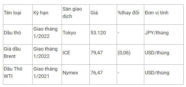 Chốt phiên giao dịch ngày thứ Hai (22/11), giá dầu thô Brent giao sau tăng 1% lên 79,7 USD/thùng. Giá dầu thô WTI giao sau tăng 1% lên 76,75 USD/thùng.