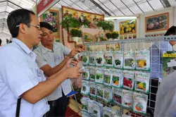 | Chọn mua hạt giống tại hội chợ - Ảnh: Thanh Đạm/TTM |