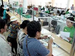 | Khách hàng giao dịch tại Ngân hàng Ngoại thương VN - chi nhánh TP.HCM. Ảnh: TTO |