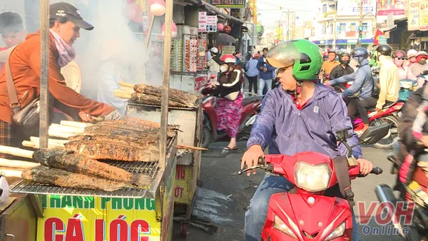 Phố bán cá lóc nướng trên đường Tân Kỳ Tân Quý có chiều dài khoảng 500m, từ giao lộ Lê Trọng Tấn đến đường Trường Chinh, với gần 10 điểm bán, phục vụ người dân mua về cúng Thần Tài. Đoạn đường này đã trở nên ùn tắc và khói mùi từ sáng sớm do số lượng người mua đông đúc.