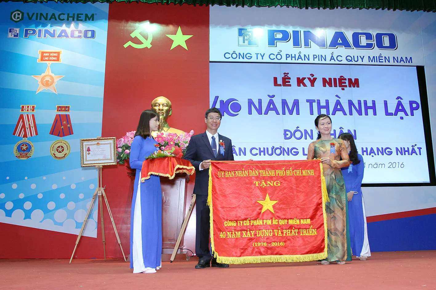 Tại lễ đón nhận, ông Trần Thanh Văn, tổng giám đốc công ty cổ phần Pin ắc quy miền Nam (Pinaco):