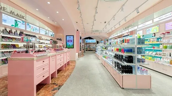 Những fan yêu thích mặt nạ và son môi bị cuốn hút ngay vào khu khu vực Wall of Mask & Lip Bar ngay cửa vào, là góc nhỏ lung linh của vô vàn lựa chọn mặt nạ cho mọi làn da. Kệ son màu hồng xinh xắn là nơi bạn dễ dàng tìm thấy và swatch những thỏi son trendy nhất.
