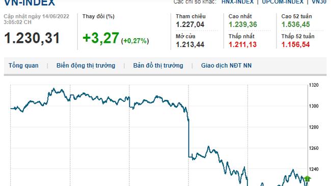 * Phiên giao dịch chiều 14/6/2022: VN-Index tăng hơn 3 điểm