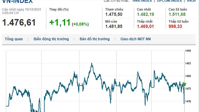 * Phiên giao dịch chiều 16/12/2021: VN-Index tăng 1,11 điểm