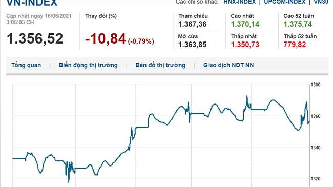 * Phiên giao dịch chiều 16/6/2021: VN-Index giảm gần 11 điểm