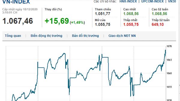 * Phiên giao dịch chiều 18/12/2020: VN-Index tiến gần lên mốc 1.070 điểm