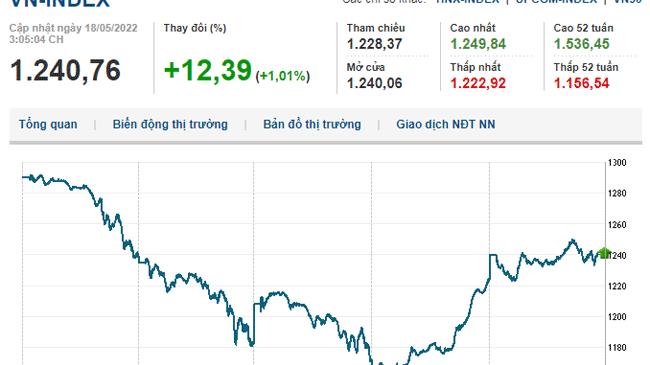 * Phiên giao dịch chiều 18/5/2022: VN-Index tăng hơn 56 điểm