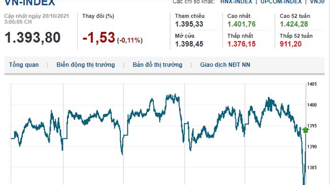 * Phiên giao dịch chiều 20/10/2021: VN-Index giảm 1,53 điểm