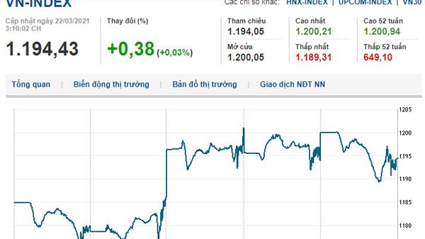 * Phiên giao dịch chiều 22/3/2021: VN-Index gần sát mốc 1.195 điểm