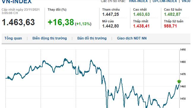 * Phiên giao dịch chiều 23/11/2021: VN-Index tăng hơn 16 điểm