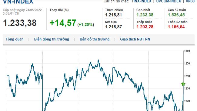 * Phiên giao dịch chiều 24/5/2022: VN-Index tăng gần 15 điểm