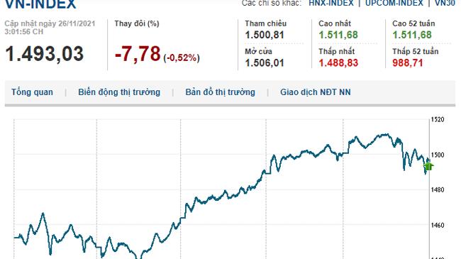 * Phiên giao dịch chiều 26/11/2021: VN-Index mất gần 8 điểm