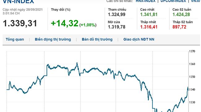 * Phiên giao dịch chiều 28/9/2021: VN-Index tăng hơn 14 điểm