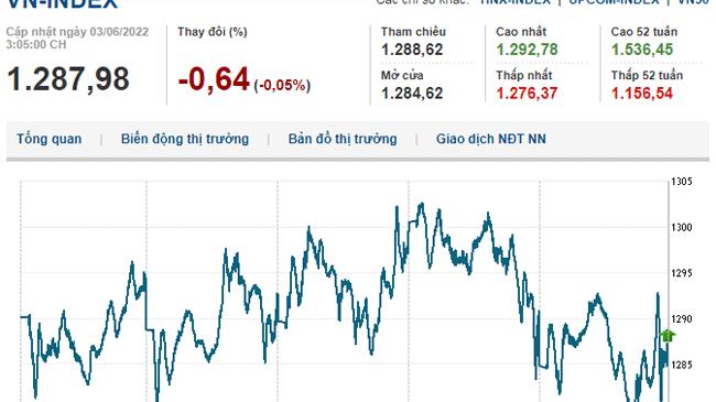 * Phiên giao dịch chiều 3/6/2022: VN-Index chỉ còn giảm 0,64 điểm