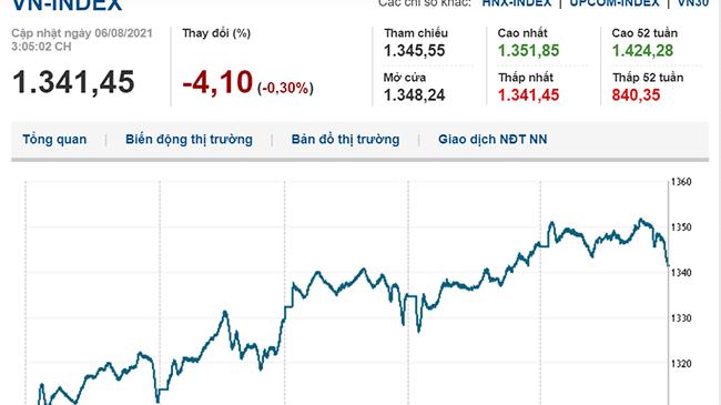 * Phiên giao dịch chiều 6/8/2021: VN-Index quay đầu giảm hơn 4 điểm
