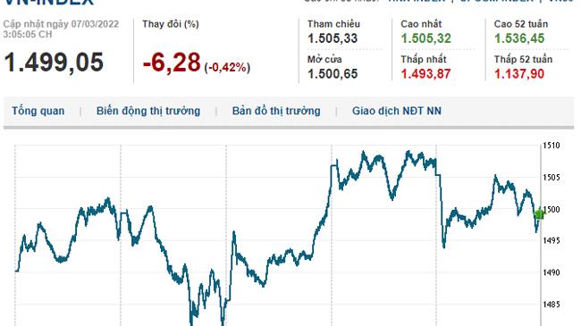* Phiên giao dịch chiều 7/3/2022: VN-Index giảm hơn 6 điểm